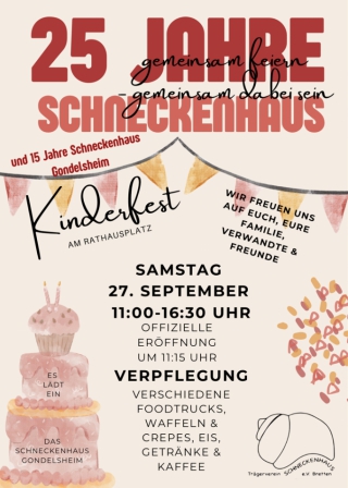 Das Kinderfest der 5. Brettener Schneckenhäuser war das erste von insgesamt vier Kinderfesten, mit denen der Trägerverein sein 25Jähriges Jubiläum feiern wird.