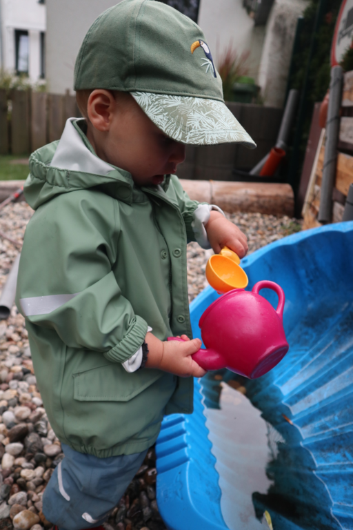 Im Sandkasten wird gebuddelt und gebaut, mit den Fahrzeugen wird über das Gelände gebraust und es wird sich auf der Schaukel oder Rutsche ausgetobt. Auch sehr beliebt ist unser Spielhäusschen mit
