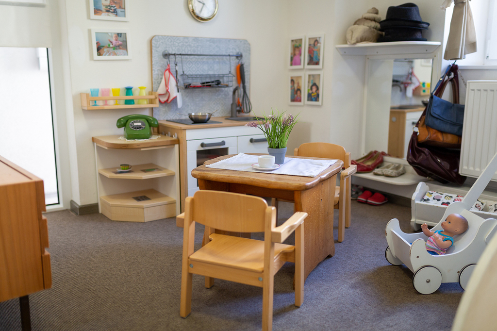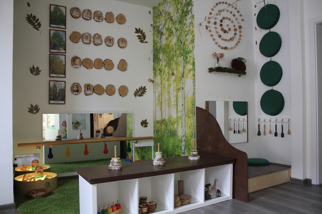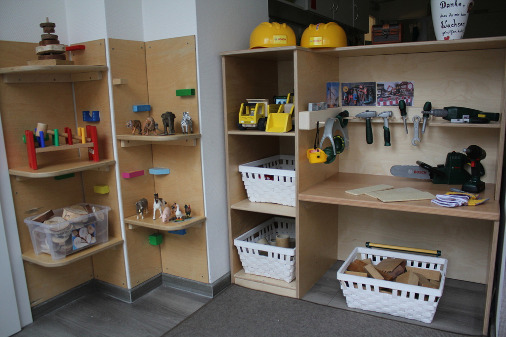 Die freie Materialwahl der Kinder erfordert ein strukturiertes und leicht erkennbares Angebot der Materialien, welches wir regelmäßig austauschen. Unsere Gruppenräume sind so gestaltet, dass die Kinder in ihrer naturgegebenen Neugier herausgefordert werden und zum Tätigwerden animiert werden.