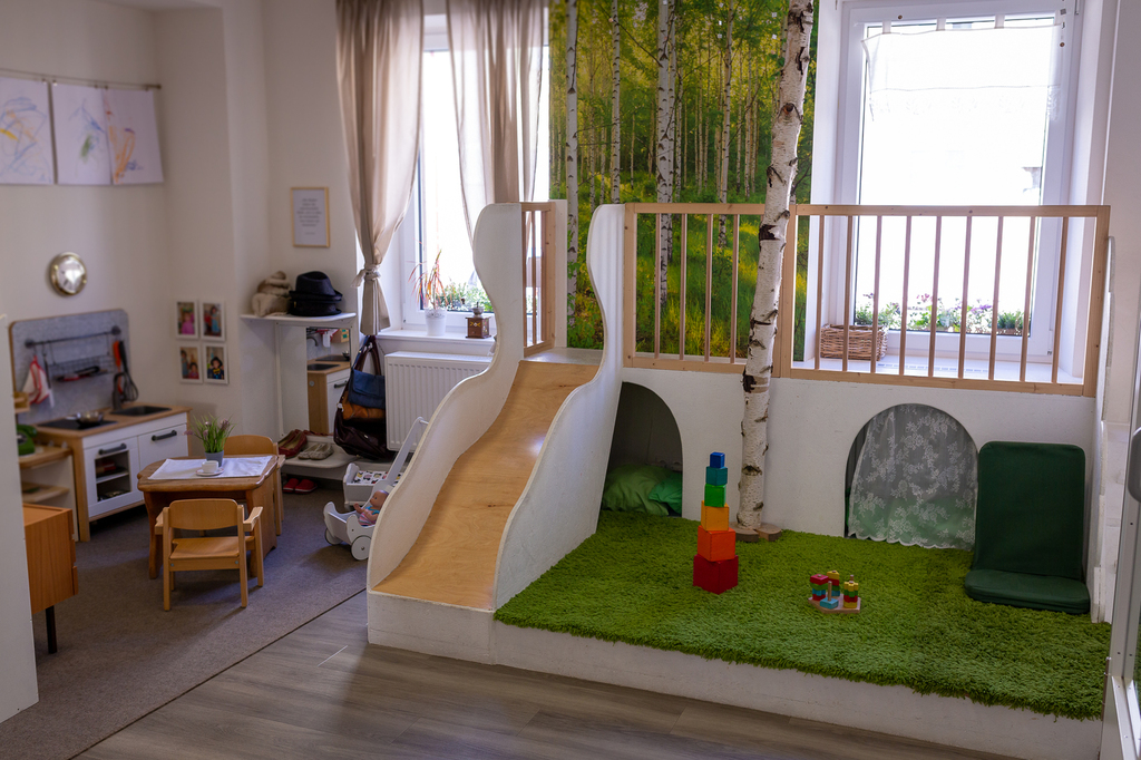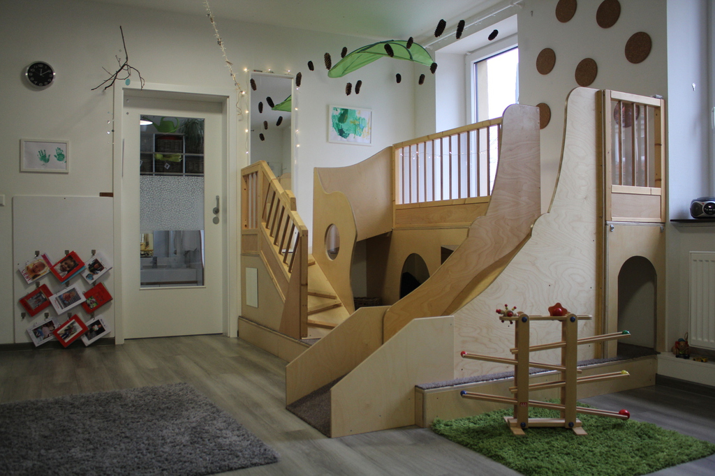 Schlafzimmer und ein Bad. Ein direkter Zugang zum Garten und eine Konstruktionsecke, sowie der Nassbereich ermöglicht den Kindern eine freie Entfaltung ihrer Bedürfnisse.