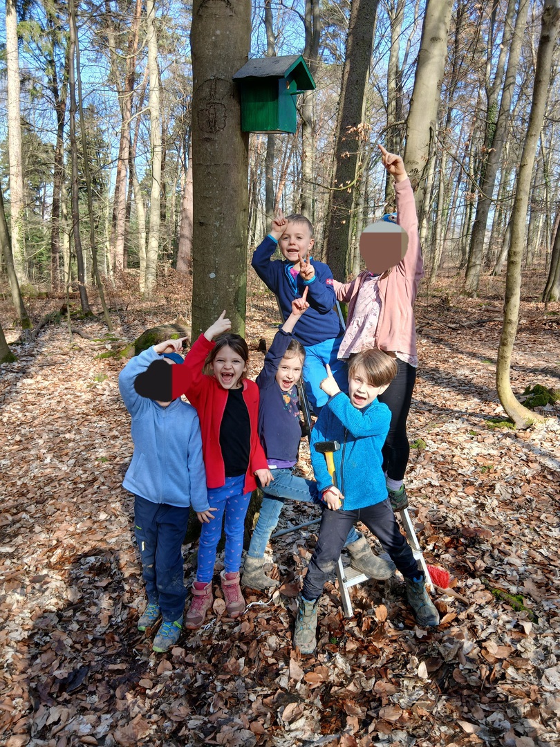 Der Frühling hat auch bei uns auf dem Waldplatz Einzug gehalten. Die ersten Pflanzen sprießen, die Schneeglöckchen zeigen sich und die Vögel sind auf der Suche nach Brutmöglichkeiten. Da will die Tierschutzgruppe helfen: Wir haben drei neue Nistkästen, die wir gespendet bekommen haben, bei uns auf dem Waldplatz aufgehängt. Nun sind wir gespannt, ob Meisen oder Kleiber einziehen werden.